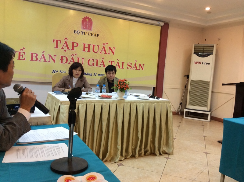 Thực hiện Kế hoạch tổng thể triển khai Đề án "Phát triển và tăng cường năng lực đội ngũ đấu giá viên giai đoạn 2013-2015, định hướng đến năm 2020" ban hành kèm theo Quyết định số 2214/QĐ-BTP ngày 05/9/2013 của Bộ trưởng Bộ Tư pháp, ngày 08/11/2014, Bộ Tư pháp đã tổ chức khóa tập huấn bán đấu giá tài sản do đồng chí Vũ Hồng Dương, Phó Cục trưởng Cục Bổ trợ tư pháp chủ trì. Tham dự khóa tập huấn có khoảng 80 đại biểu đến từ Học viện Tư pháp, các Trung tâm dịch vụ bán đấu giá tài sản và các doanh nghiệp bán đấu giá các tỉnh khu vực phía Bắc từ Nghệ An trở ra.