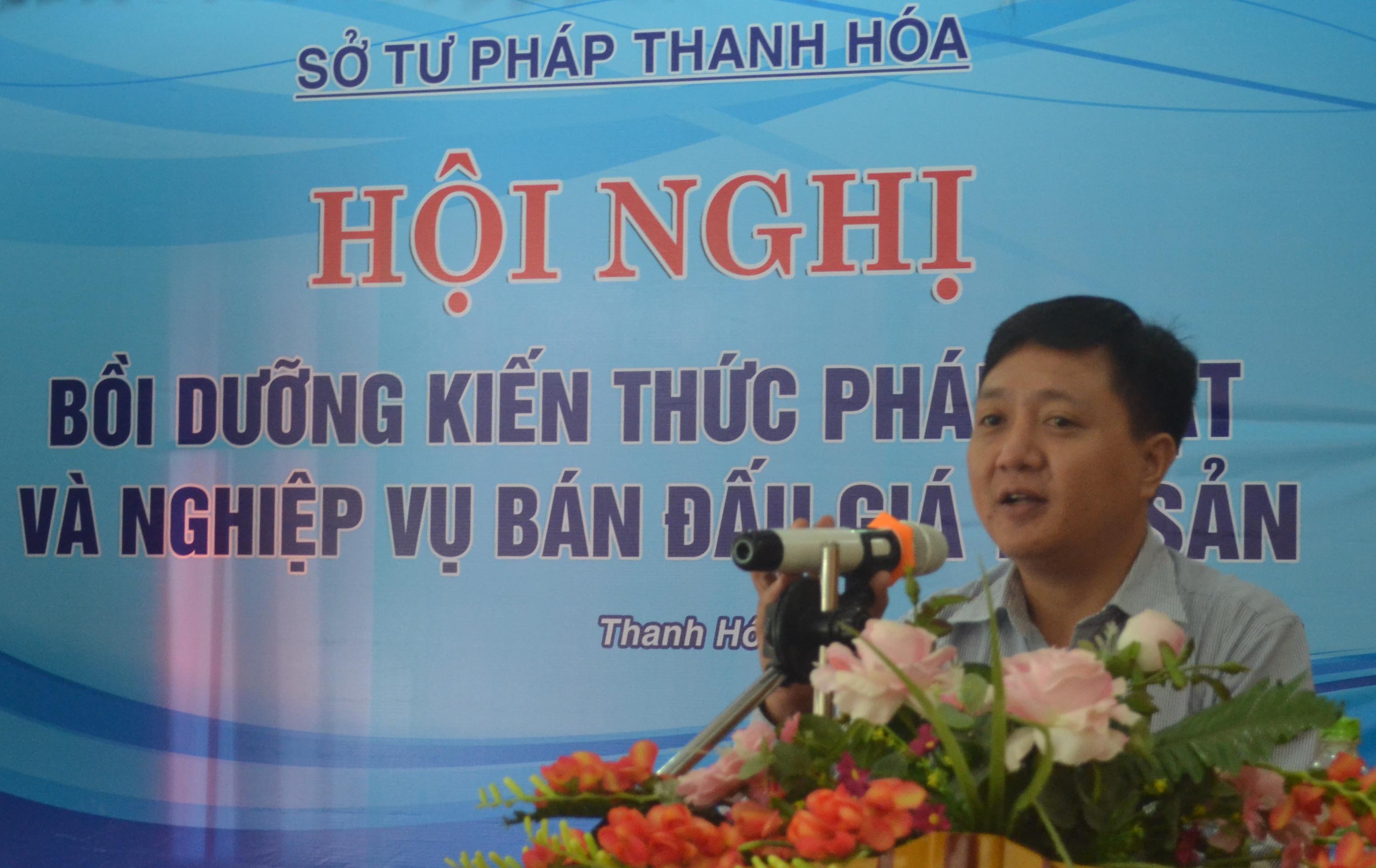 Tại hội nghị, Đồng chí Nguyễn Quang Hòa, Phòng Quản lý đấu giá - Cục Bổ trợ tư pháp, Bộ Tư pháp đã truyền đạt các nội dung: Những quy định mới của pháp luật liên quan đến bán đấu giá tài sản, trong đó tập trung một số điểm mới của Thông tư liên tịch số 14/2015/TTLT-BTNMT- BTP ngày 04 tháng 4 năm 2015 của Bộ Tài nguyên Môi trường và Bộ Tư pháp quy định việc tổ chức thực hiện đấu giá quyền sử dụng đất để giao đất có thu tiền sử dụng đất hoặc cho thuê đất; Thông tư số 02/2015/TT-BTC ngày 05/01/2015 của Bộ trưởng Bộ Tài chính sửa đổi, bổ sung Thông tư số 48/2012/TT-BTC ngày 16/3/2012 của Bộ Trưởng Bộ Tài chính hướng dẫn việc xác định giá khởi điểm và chế độ tài chính trong hoạt động đấu giá quyền sử dụng đất để giao đất có thu tiền sử dụng đất hoặc cho thuê đất.