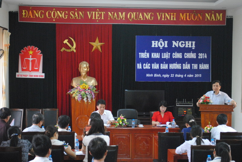 Tại Hội nghị, các đại biểu đã được nghe đồng chí Bùi Lam Sơn - Phó Giám đốc Sở Tư pháp phổ biến những nội dung cơ bản, một số điểm mới của Luật Công chứng 2014 so với Luật Công chứng 2006 như phạm vi công chứng; chức năng xã hội của công chứng viên; thời gian đào tạo nghề công chứng; điều kiện được miễn đào tạo nghề công chứng; tổ chức hành nghề công chứng; Thẻ công chứng viên; vấn đề hợp nhất, sáp nhập, chuyển nhượng; tên gọi của văn phòng công chứng; thời hạn lưu trữ hồ sơ công chứng; thù lao công chứng; vai trò, trách nhiệm của Sở Tư pháp trong việc giúp Ủy ban nhân dân cấp tỉnh quản lý hoạt động công chứng tại địa phương…; Đồng chí Nguyễn Thị Lợi - Trưởng phòng Bổ trợ Tư pháp phổ biến những nội dung cơ bản của Nghị định 23/2015/NĐ-CP ngày 16/02/2015 của Chính phủ về cấp bản sao từ sổ gốc, chứng thực bản sao từ bản chính, chứng thực chữ ký và chứng thực hợp đồng, giao dịch; Đồng chí Đỗ Văn Hạnh - Chánh Thanh tra Sở phổ biến những nội dung cơ bản của Nghị định 110/2013/NĐ-CP ngày 24/9/2013 của Chính phủ quy định xử phạt vi phạm hành chính trong lĩnh vực bổ trợ pháp, hành chính tư pháp, hôn nhân và gia đình, thi hành án dân sự, phá sản doanh, hợp tác xã.
