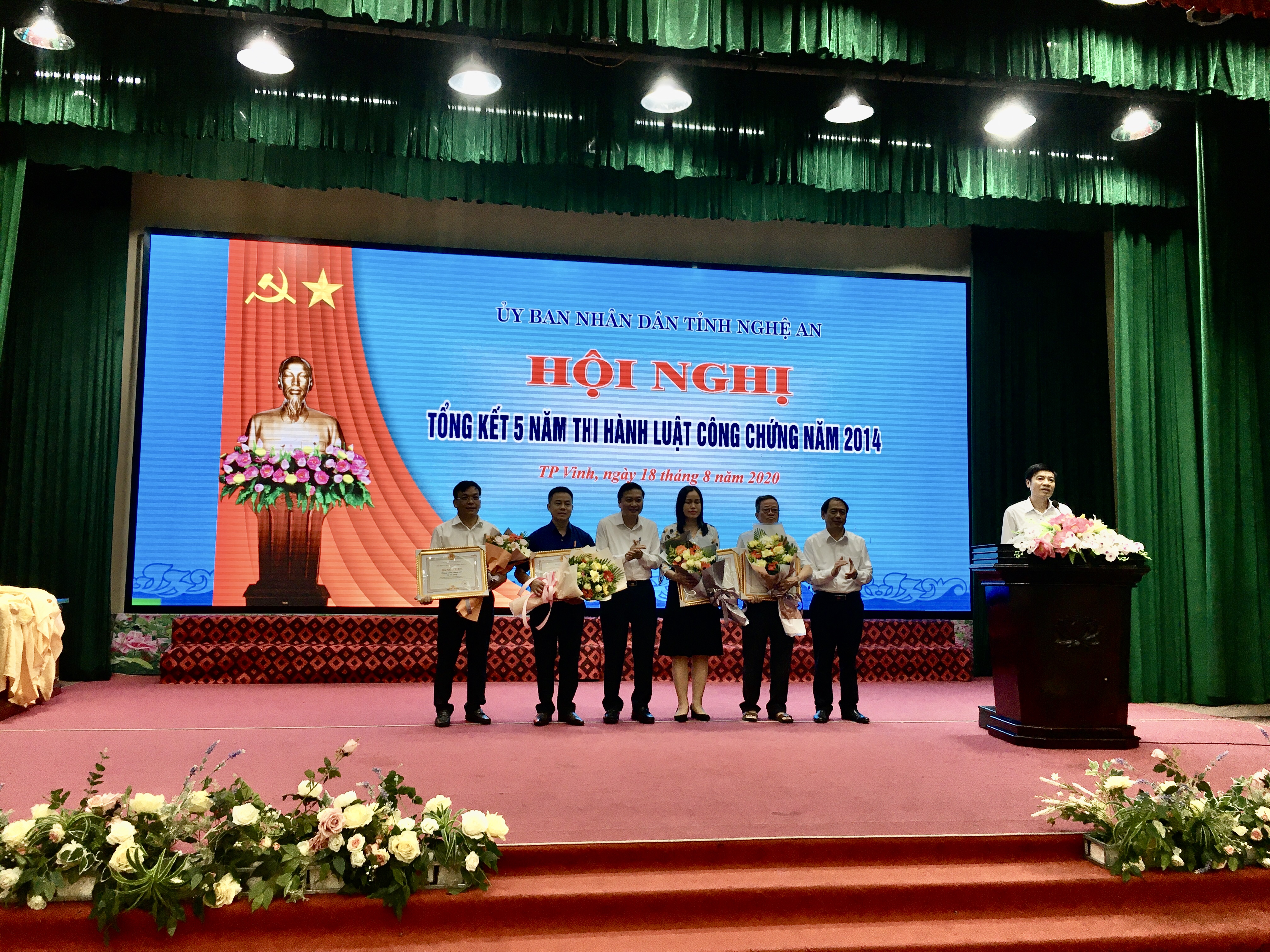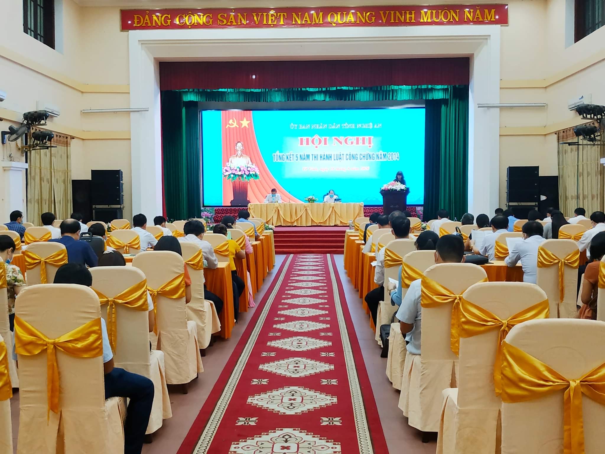 Thực hiện chỉ đạo của Bộ Tư pháp tại Quyết định số 1241/QĐ-BTP ngày 22/5/2020, ngày 18/8/2020, Ủy ban nhân dân tỉnh Nghệ An tổ chức hội nghị Tổng kết 05 năm triển khai thi hành Luật công chứng 2014. Về dự và chỉ đạo hội nghị có Đồng chí Đặng Kim Hoa, Phó Cục trưởng Cục Bổ trợ tư pháp, Bộ Tư pháp; đồng chí Lê Hồng Vinh, Phó Chủ tịch thường trực UBND tỉnh tới dự và chỉ đạo hội nghị .