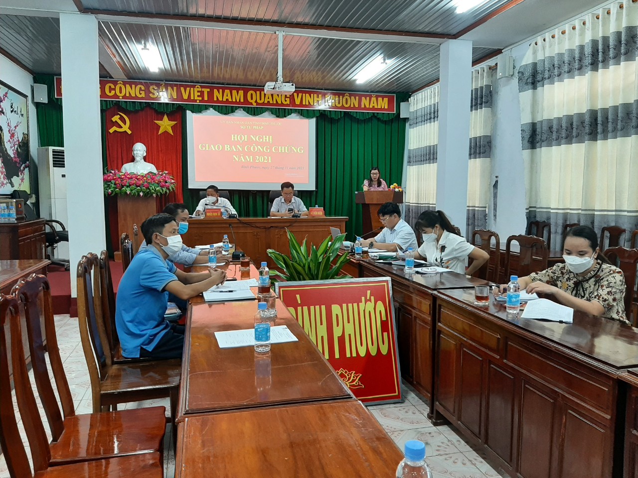 Thực hiện nhiệm vụ trọng tâm công tác Tư pháp năm 2021, công tác quản lý nhà nước về công chứng, ngày 27/11/2021, Sở Tư pháp tỉnh Bình Phước phối hợp với Hội công chứng tỉnh tổ chức Hội nghị trực tuyến giao ban công chứng năm 2021 với 24 tổ chức hành nghề công chứng trên địa bàn tỉnh.