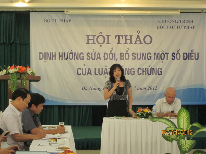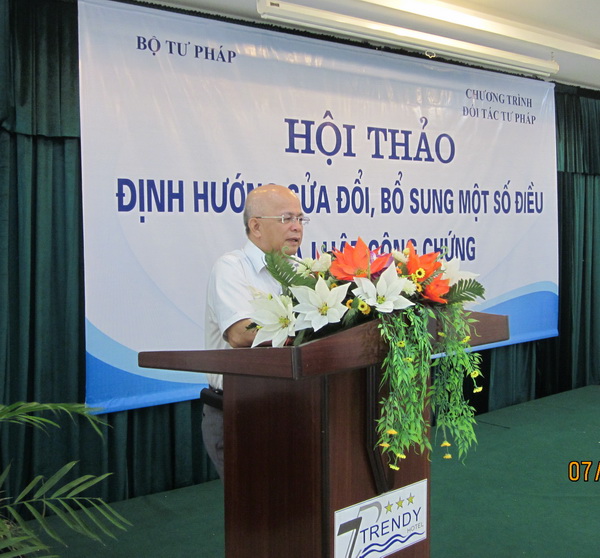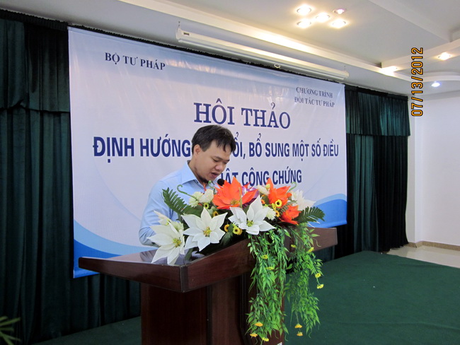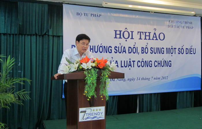 Thực hiện Nghị quyết số 07/2011/QH13 ngày 06/8/2011 của Quốc hội về Chương trình xây dựng luật, pháp lệnh năm 2012 và điều chỉnh Chương trình xây dựng luật, pháp lệnh năm 2011; Quyết định số 207/QĐ-TTg ngày 17/2/2012 của Thủ tướng Chính phủ về việc phân công cơ quan chủ trì soạn thảo các dự án luật, pháp lệnh thuộc Chương trình xây dựng luật, pháp lệnh nhiệm kỳ Quốc hội khóa XIII, trong đó có Dự án Luật sửa đổi, bổ sung một số điều của Luật công chứng, ngày 14/7/2012, Bộ Tư pháp đã tổ chức Hội thảo về định hướng sửa đổi, bổ sung Luật công chứng tại Thành phố Đà Nẵng. Thứ trưởng Nguyễn Đức Chính đã đến dự và chủ trì Hội thảo.