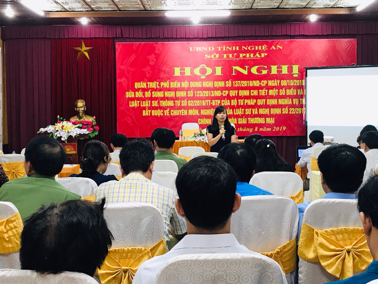 Đồng chí Đặng Kim Hoa, Phó Cục trưởng Cục Bổ trợ tư pháp, Bộ Tư pháp dự Hội nghị và trực tiếp giới thiệu nội dung Nghị định số 137/2018/NĐ-CP, Thông tư số 02/2019/TT-BTP quy định nghĩa vụ tham gia bồi dưỡng về chuyên môn, nghiệp vụ của luật sư, Nghị định số 22/2017/NĐ-CP về Hòa giải thương mại. Đây là các văn bản có nhiều nội dung quan trọng vói đội ngũ luật sư cụ thể:Nghị định số 137/2018/NĐ-CP (có hiệu lực từ 25/11/2018) sửa đổi, bổ sung Nghị định số 123/2013/NĐ-CP đã sửa đổi các quy định nhằm nâng cao chất lượng đội ngũ luật sư; sửa đổi, bổ sung các quy định về tổ chức Đại hội của tổ chức xã hội – nghề nghiệp và thủ tục bãi nhiệm các chức danh của tổ chức xã hội – nghề nghiệp; sửa đổi, bổ sung các quy định về thu hồi Giấy đăng ký hoạt động của tổ chức hành nghề luật sư, thu hồi giấy phép thành lập tổ chức hành nghề luật sư nước ngoài, thu hồi giấy phép hành nghề tại Việt Nam của luật sư nước ngoài.