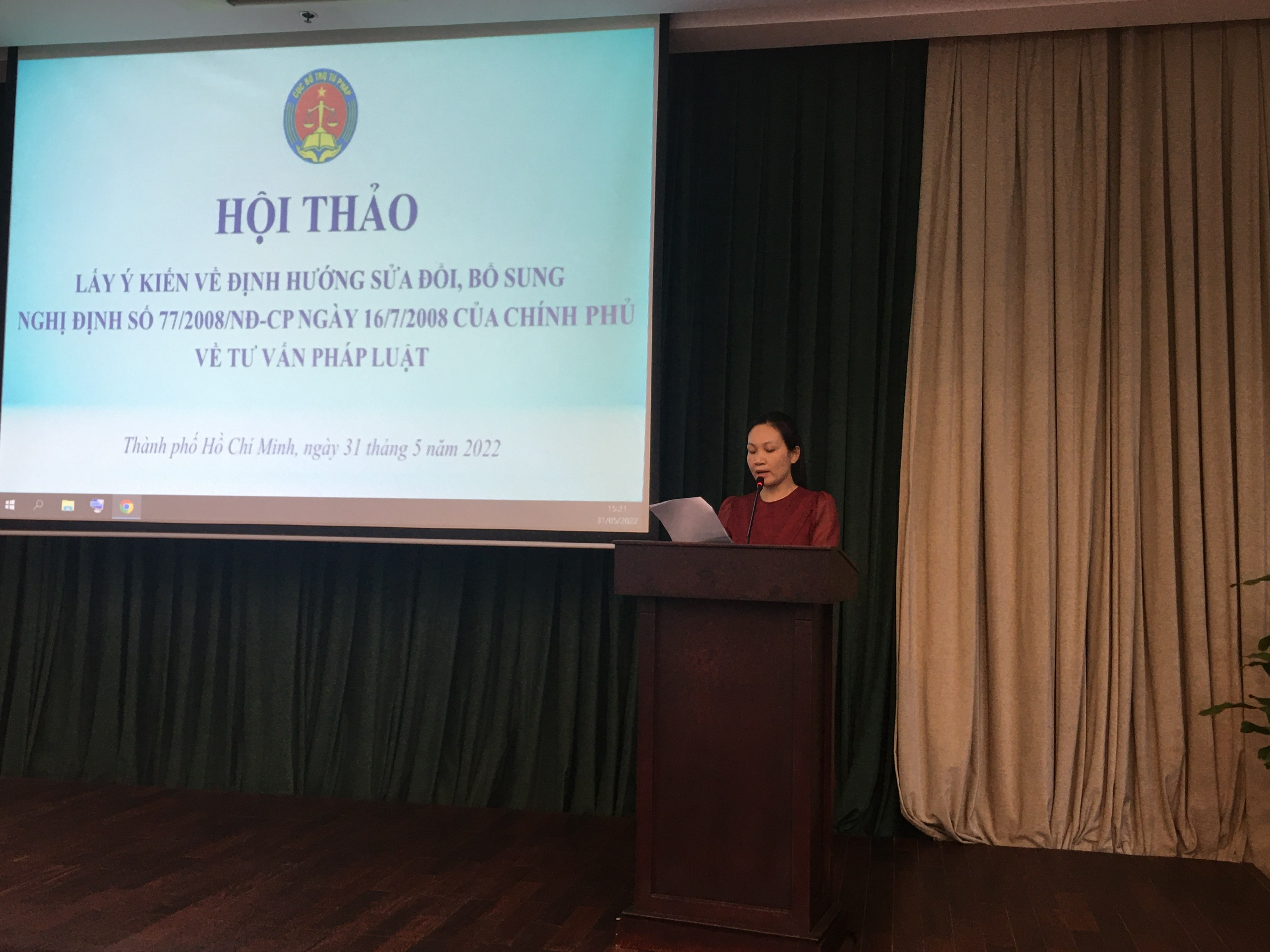 Tại Hội thảo này, Cục Bổ trợ tư pháp đã trình bày thuyết minh một số nội dung cơ bản sửa đổi, bổ sung Nghị định số 77/2008/NĐ-CP ngày 16/7/2008 của Chính phủ về tư vấn pháp luật. Việc sửa đổi, bổ sung Nghị định số 77/2008/NĐ-CP phải bảo đảm hoạt động tư vấn pháp luật phát triển đúng mục tiêu là góp phần thúc đẩy khả năng tiếp cận pháp luật của người dân, duy trì mục tiêu hoạt động tư vấn pháp luật có tính xã hội, không nhằm mục đích lợi nhuận, lấy thu bù chi; phân định rõ hoạt động tư vấn pháp luật với mục đích xã hội và hoạt động hành nghề của luật sư (cung cấp dịch vụ pháp lý chuyên nghiệp); không trái với các quy định của pháp luật về luật sư, trợ giúp pháp lý và các văn bản pháp luật khác có liên quan. Trên cơ sở kế thừa các quy định còn hợp lý của Nghị định số 77/2008/NĐ-CP cần tập trung sửa đổi, bổ sung các quy định để giải quyết những vướng mắc, bất cập trong tổ chức và hoạt động tư vấn pháp luật, bảo đảm tính khả thi và hiệu quả.