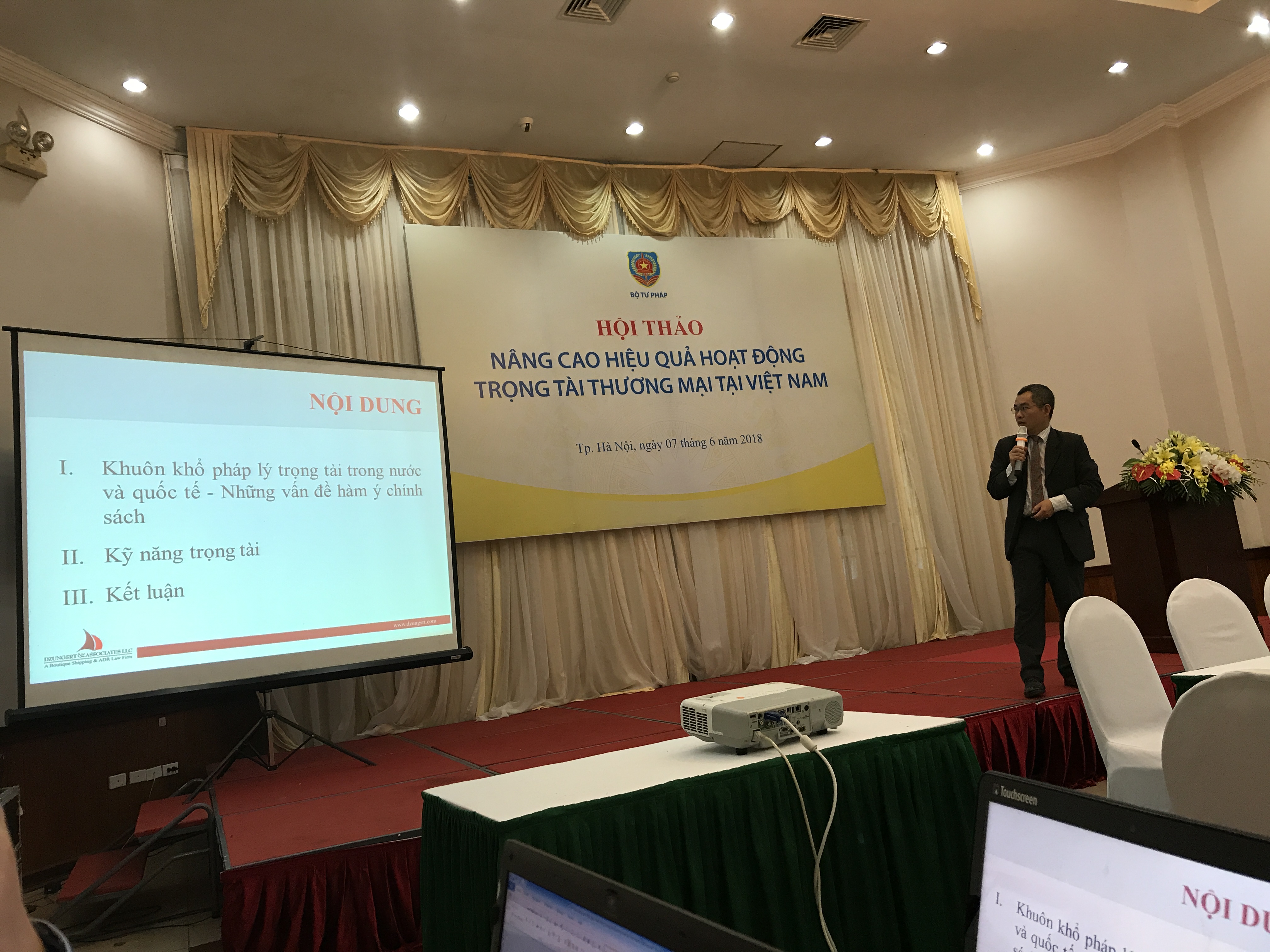 Tham dự Hội thảo ông Nguyễn Đình Tiến, Phó Chánh Tòa kinh tế, Tòa án nhân dân Thành phố Hà Nội đã trình bày tham luận về "Thực tiễn Tòa án hỗ trợ trọng tài và giải pháp nâng cao chất lượng đội ngũ trọng tài viên"; ông Vũ Ánh Dương, - Tổng thư ký Trung tâm trọng tài quốc tế Việt Nam (VIAC) đã trình bày tham luận về "Thực tiễn giải quyết tranh chấp và giải pháp nâng cao năng lực đội ngũ trọng tài viên tại Trung tâm trọng tài quốc tế Việt Nam".