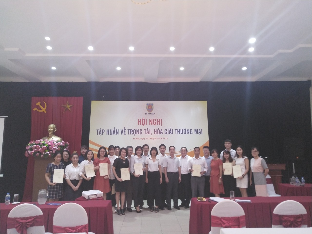 Triển khai Kế hoạch công tác năm 2019 và Thông tư số 02/2019/TT-BTP ngày 15/3/2019 của Bộ trưởng Bộ Tư pháp quy định nghĩa vụ tham gia bồi dưỡng bắt buộc về chuyên môn, nghiệp vụ của luật sư, ngày 20/9/2019, tại Hà Nội, Cục Bổ trợ tư pháp, Bộ Tư pháp tổ chức Hội nghị tập huấn về kiến thức pháp luật, kỹ năng giải quyết tranh chấp bằng trọng tài, hòa giải thương mại cho đội ngũ luật sư, trọng tài viên và hòa giải viên thương mại với sự chủ trì của đồng chí Nguyễn Thị Mai, Phó Cục trưởng Cục Bổ trợ tư pháp.